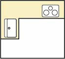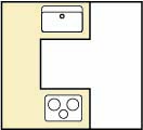 I 型の次に多い形状です。三角形のような動線になり、使いやすい形状です。