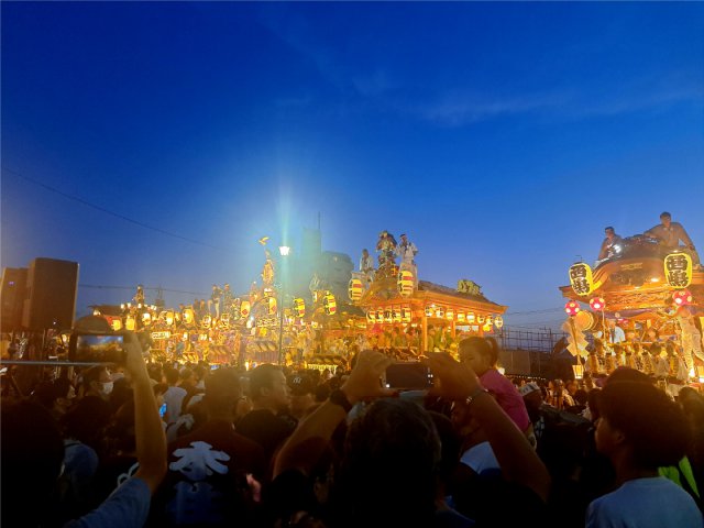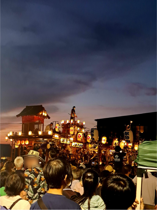 山車や、屋台、お神輿もあり、すごくにぎわっていました。