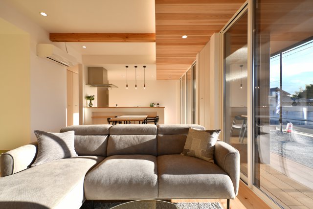 昼間は照明いらずの明るさと圧倒的な開放感で、心まで解き放たれる贅沢な時間をリビングで。