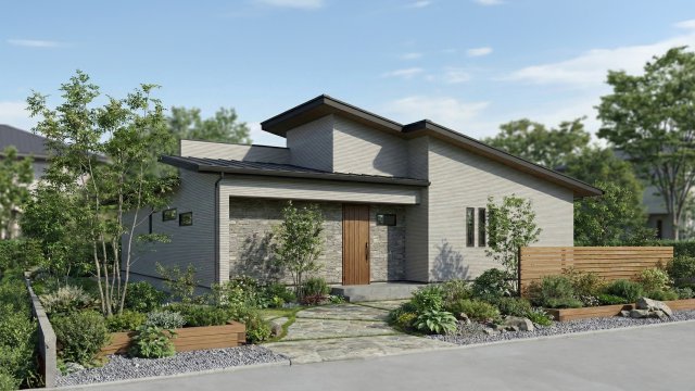 無機質なグレーの外観は、植栽の緑を最も鮮やかに魅せる最高のキャンバスに。