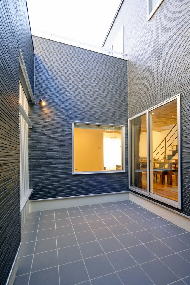 圧倒的開放感の“半吹き抜け”と“窓の無い家”が織り成すモダンなデザイナーズハウス。広々タイルデッキが暮らしをちょっと豊かにしてくれる。