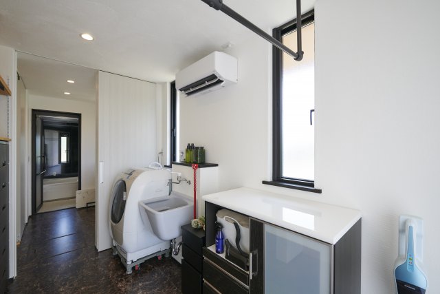 洗面・トイレ・脱衣・ユニットバスを一直線に結ぶことで、暮らしも家事も快適になる動線設計に。プチストレスになり得るちょっとの移動にも気を配った設計です。