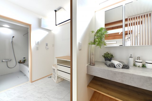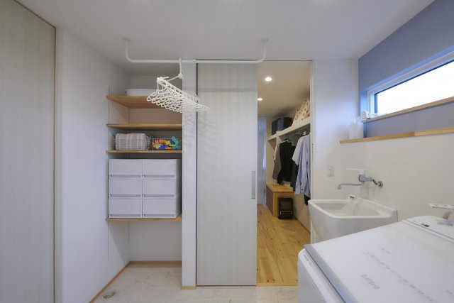 洗面と脱衣をセパレート(分離)させることで、混み合う朝も夜も、家族同士の待ち時間が無くなる快適な間取り設計に。プチストレスを無くせる暮らしを考えた設計です。