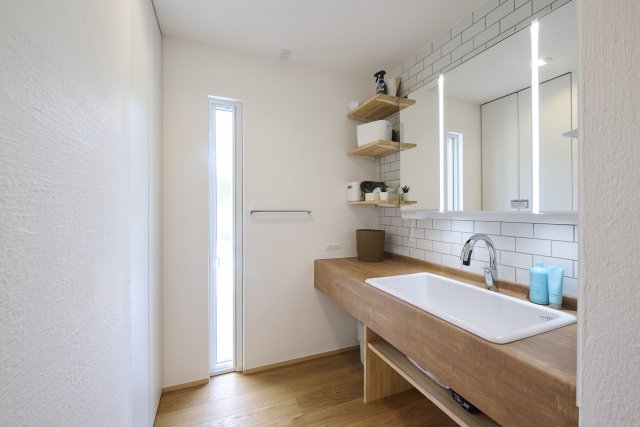 洗面コーナーと脱衣・ランドリーを分離することで、家族同士の使い勝手とプライバシーに配慮した設計。