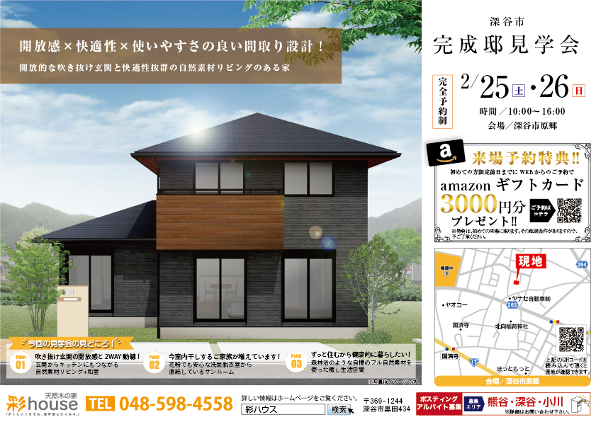 お客様のご厚意で2日間限定の完成邸見学会を開催致します!