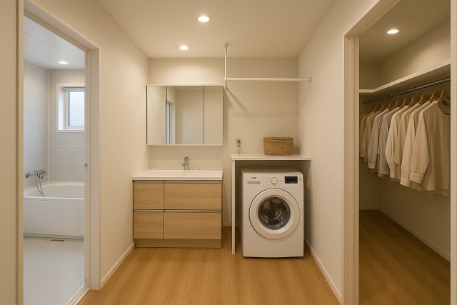 洗面所にはクローゼットが併設されており使い勝手抜群