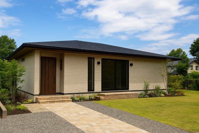 軒を伸ばすことで雨風を凌ぐ、デザイン美と機能美を兼ね備えた普遍的な外観