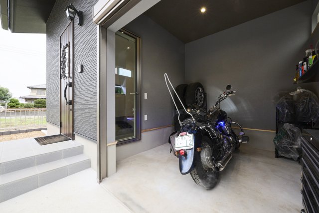 関直結のビルトインガレージは雨風から愛車を守りながら、