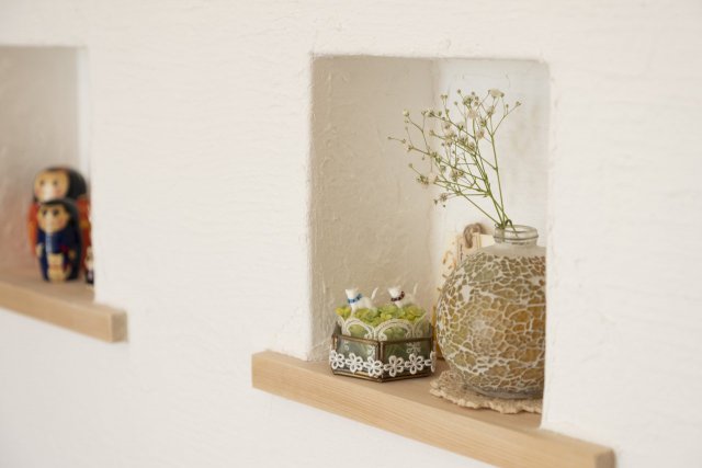天然木のやさしい肌触りと、漆喰壁の調湿性が合わさり、四季を通して心地よさを実感できる住空間を創造。