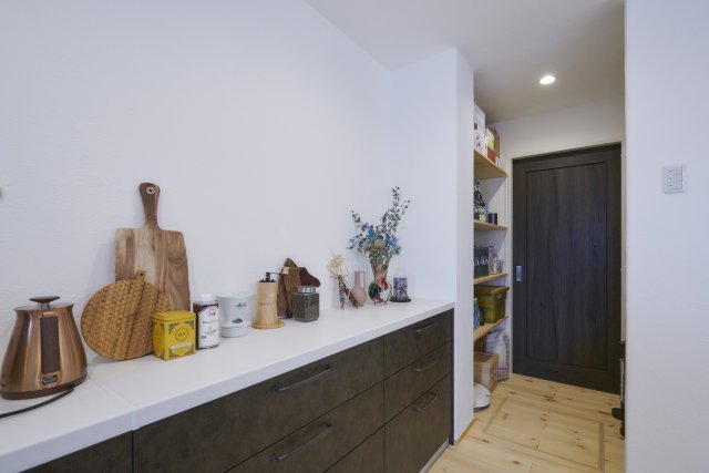 玄関とキッチンを結ぶパントリーと回遊動線で、