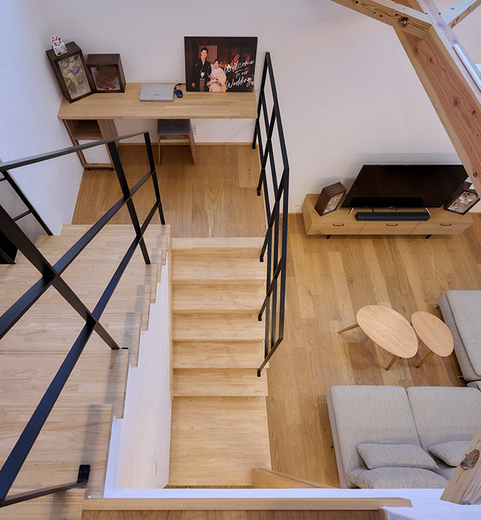 吹き抜けにこだわったこともあり、階段の段数や間取りに工夫が必要で、設計担当さんには苦労をかけました。お若いながら、私たちの要望を叶えようと力を尽くしてくださり、有り難く思います。担当設計の方にも、この場を借りて感謝を伝えたいと思います。