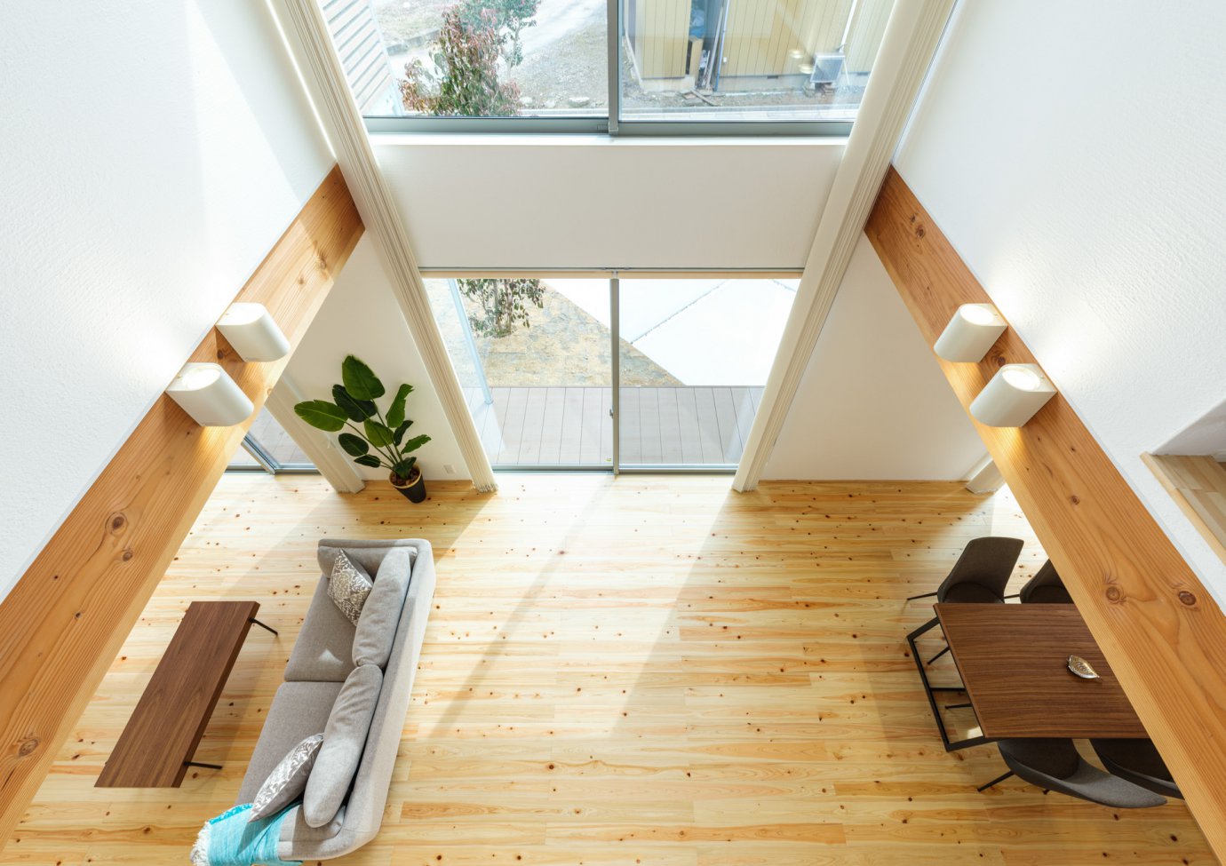 "吹き抜けを設けるとLDKを中心に高い位置から