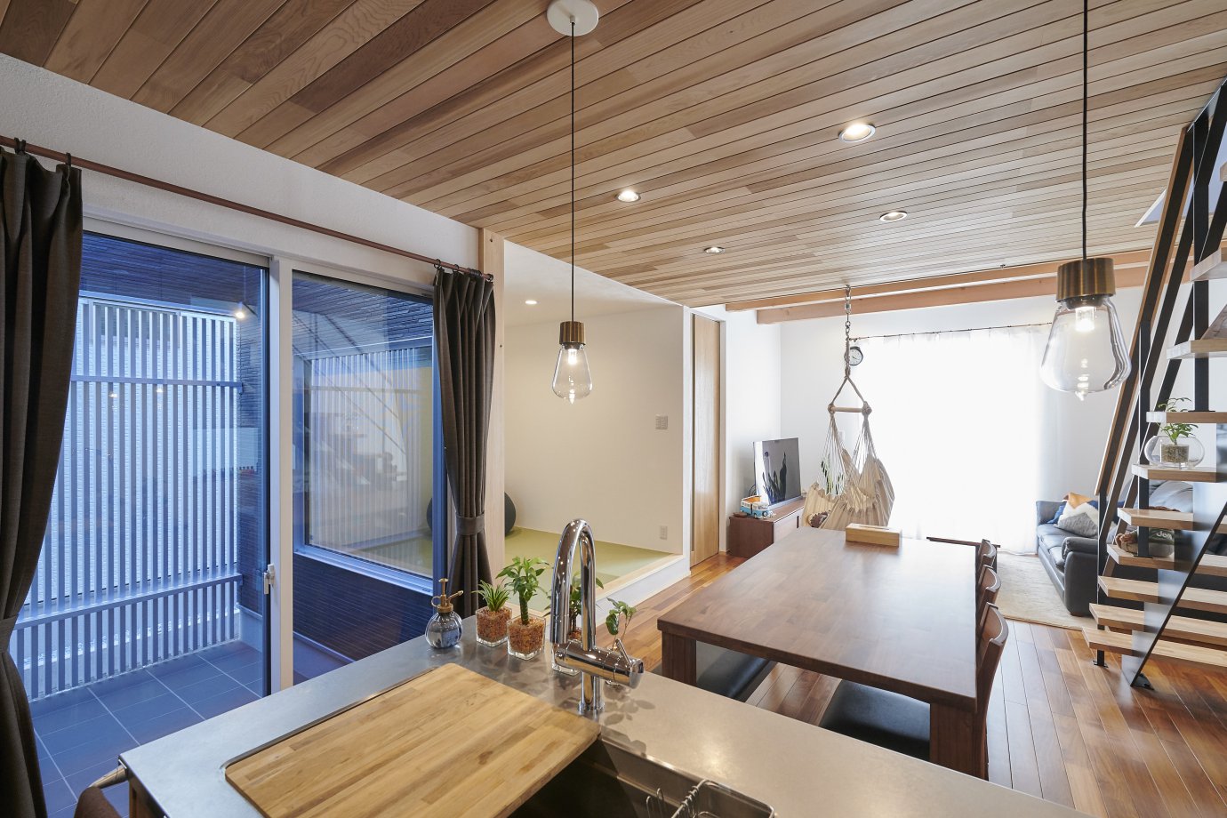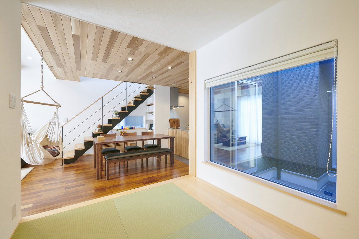 開放的な気分を味わいながら、誰にも邪魔されない家族だけの空間で遊び心のある住まいのご提案です。
