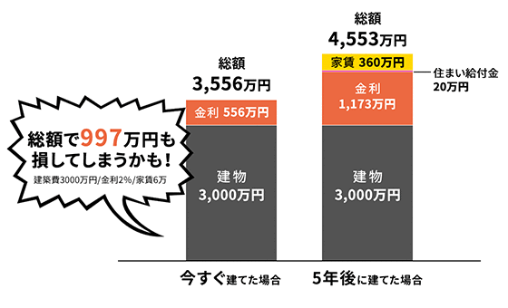 ご家族のコミュニケーションや性能による快適な住まいなど、お子様が健やかにのびのびと成長できることを考えれば、広々とした新築住宅に住むことをお勧めします。