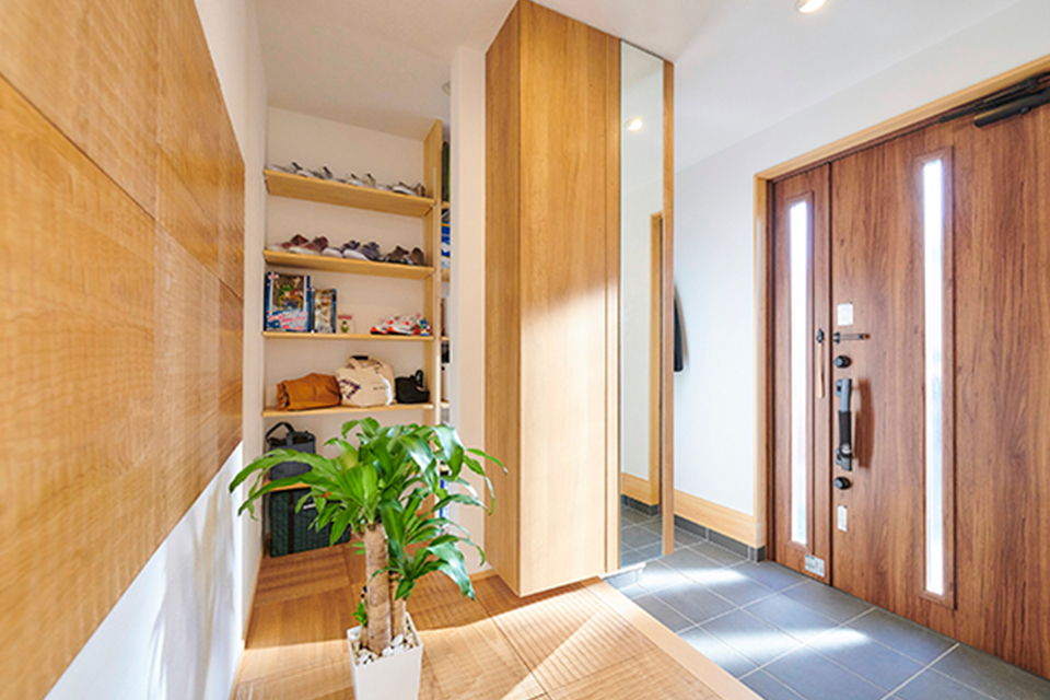 より広さを実感する土間風玄関と玄関収納