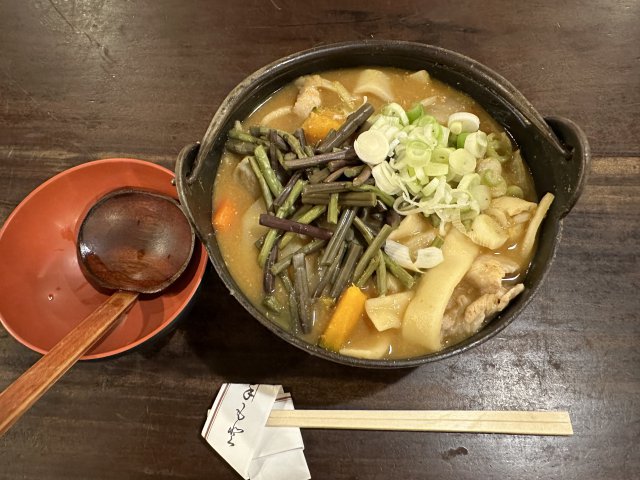 ほうとううどん屋さんに到着した時には19時。夜ご飯にはちょうどよい時間でした。