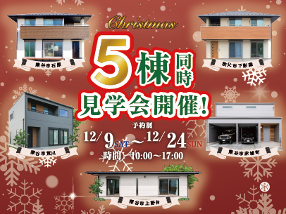 5棟同時見学会開催!テイストの違う5棟のモデルハウス!予約受付中!