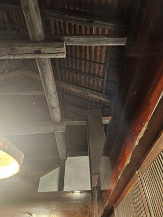 太くて立派な梁、柱、自然いっぱいの中で、自然素材を使ったお部屋。