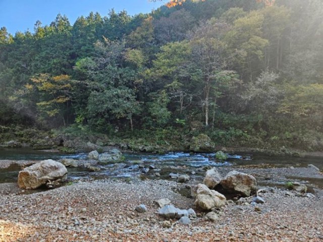 絶景な野外テラスもあり、周辺も川、豊かな自然に囲まれた自然いっぱいの中でとても素敵な世界観でした。