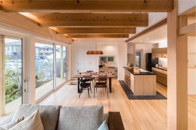 漆喰と無垢材などの自然素材を活かした家づくりを提案している彩ハウス熊谷展示場です。