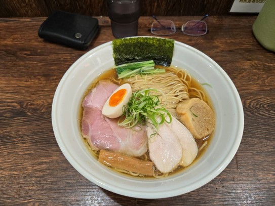中華そば醤油を注文し、スープを飲むと昆布の旨みがとても美味しく心も体も温まりました。