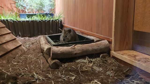 カピバラまた、世界一幸せな動物といわれるクオッカを見ることができるのは、こども動物自然公園だけ! 甥っ子もクオッカの前からなかなか離れません。。。 クオッカ