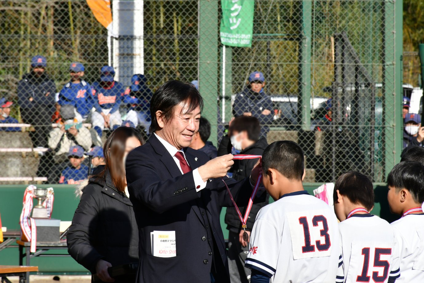 閉会式では、当社代表が登壇し、入賞された選手の皆様へ優勝旗・メダルを贈呈させていただきました。