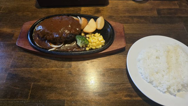 運ばれてきたハンバーグは、ふっくらジューシーで肉の旨みがしっかり感じられる一品。