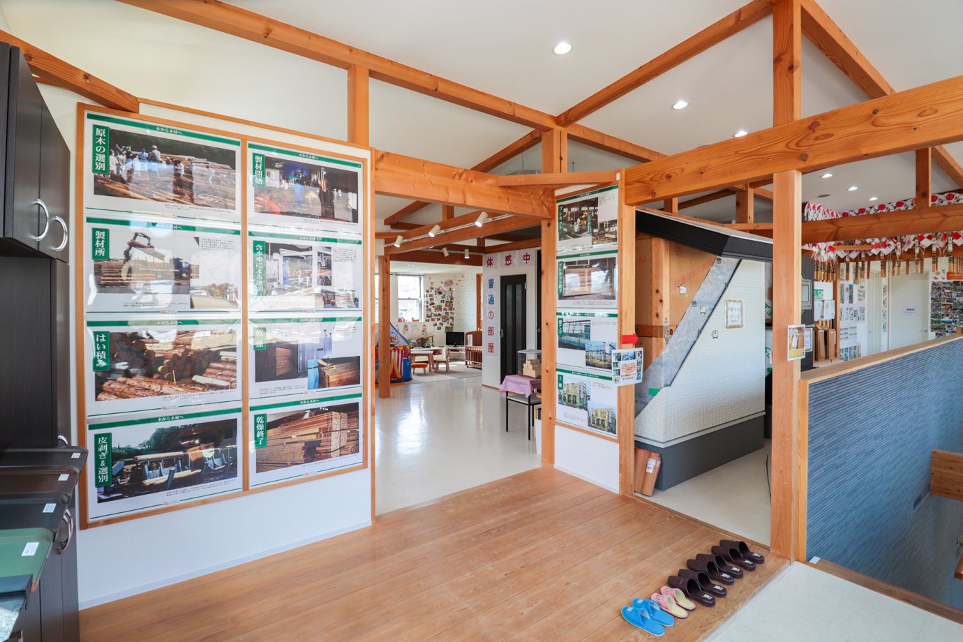 代表自ら伐採に行った大黒柱と、大きな薪ストーブが、お客様をお出迎え致します。 1階は、事務所・雑貨屋・駄菓子屋と、アットホームな雰囲気です。 2階には、沢山の土地情報から家の構造。設備のショールーム。 彩ハウスの本社だからこそ、彩ハウスの全てが分かります。 創業100年だからこその匠の技術と、 桧の無垢床と漆喰の塗り壁が優しく包み込んでくれる居心地のいい空間を、ぜひ一度ご体感ください。