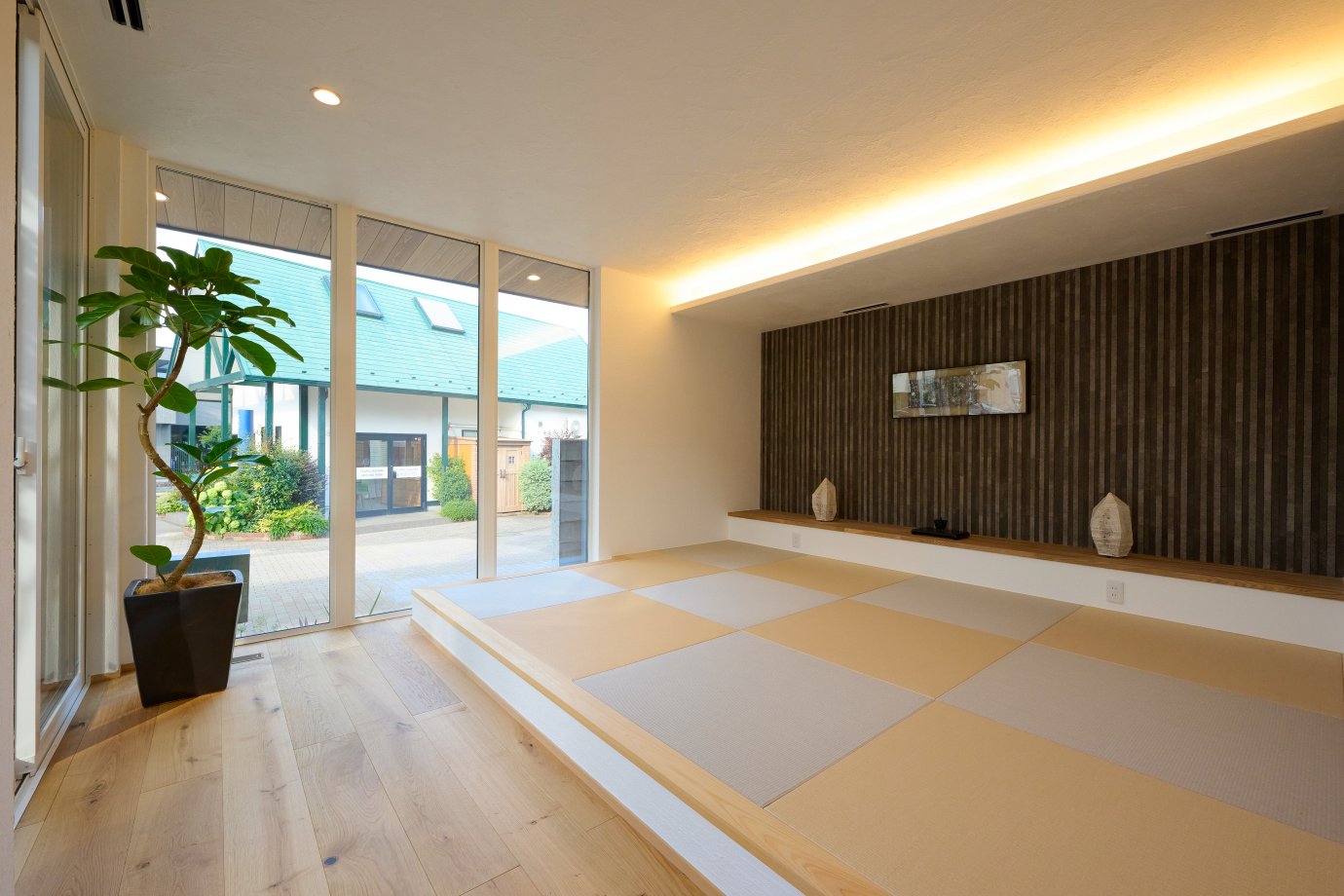 大空間の中庭を設けることにより屋外との繋がりを体感頂ける展示場となっております。