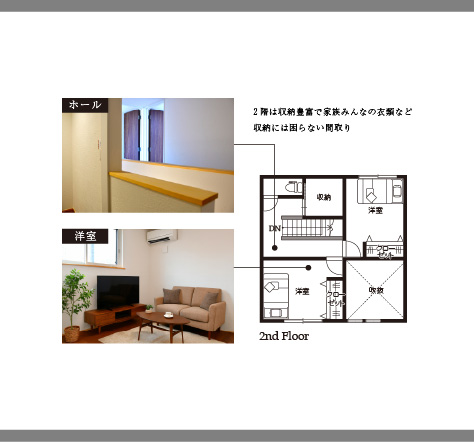 収納たっぷりで家族みんなの衣類など収納には困らない間取り設計。