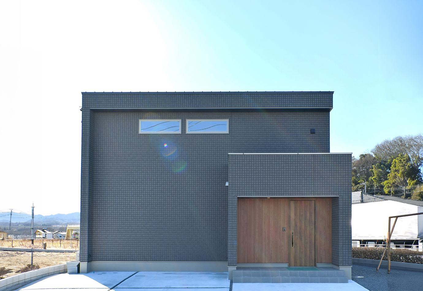 黒を基調としたモダンなボックス型の外観に、アクセントとして温かみのある木製外壁を採用。無機質と有機質が調和するデザインです。