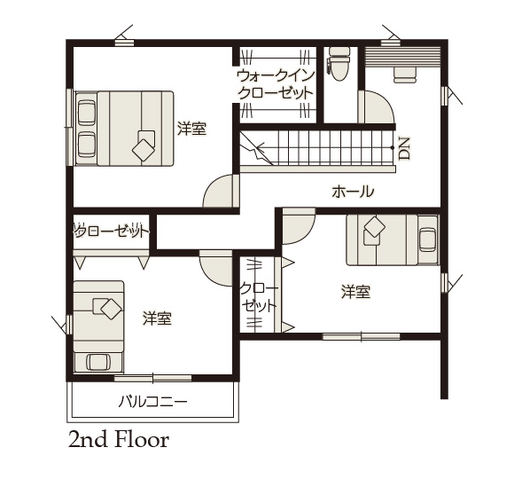 すべての洋室にクローゼットを配置し、それぞれの部屋で収納が完結。