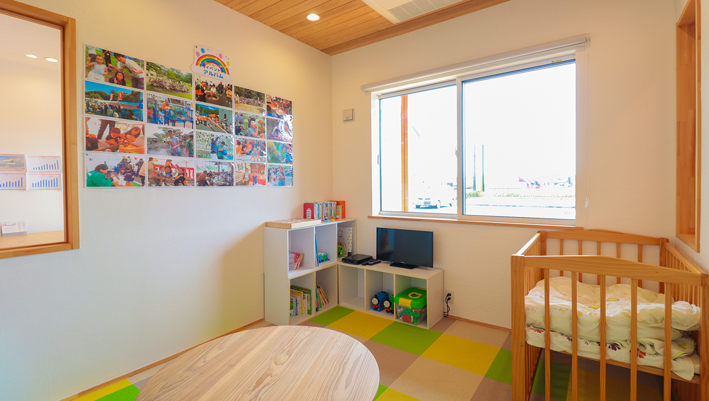 各年齢に合わせて楽しめるキッズスペース お子さまが思いっきり遊べるキッズスペースを完備しています。人気のままごとキッチンやキッズテント、DVDなど各年齢に合わせて楽しめるおもちゃや遊具を取り揃えたキッズスペースです。弊社のスタッフがお子さまをお預かりしますので安心してゆっくりとお打ち合わせいただけます。